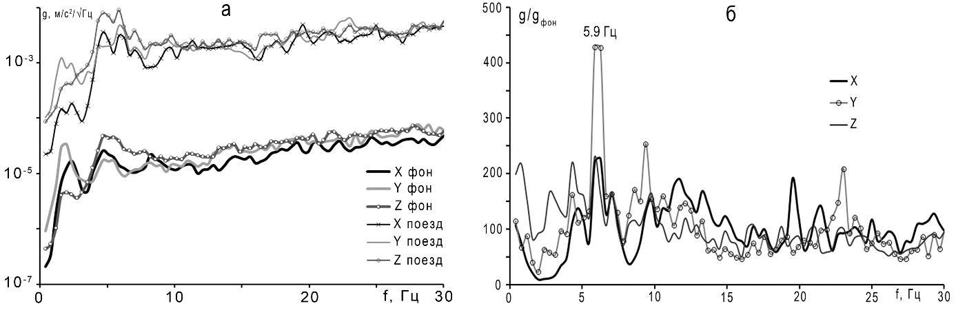 The main source of strong seismic vibrations in the region of the Severnaya Railway track is railway transport. When resonant frequencies of rock system “subgrade and underlying soils” equal seismic vibrations frequencies of passing trains, dynamic load on subgrade significantly rises, which may result in emergency situations.