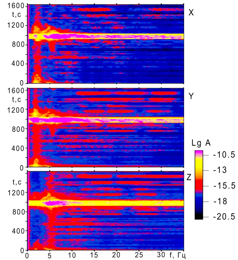 - Engineering and seismic methods based upon spectrum analysis of seismic noise, allowing us to single out signals from the whole spectrum of microseisms corresponding to harmonic sources of oscillations [15]. Estimation of dynamic property of the record is based upon obtaining power spectrum for each of components of registration (i, j = X, Y, Z) and coherence function in pairs for components: