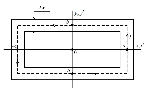 In this case, single-turn (W = 1) coil is considered, inductance of a real electromagnet is proportionate to the square of the number of turns. As a source of electromagnetic field, let us consider a square-shaped electromagnet. Its calculation scheme is seen from the fig. 1.