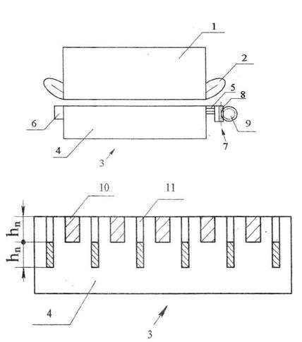 Расчетная модель паза ВЭ регулируемого ЛАД для данного случая показана на рис. 2. Видно, что замыкающим элементом 3 в пазах ВЭ замкнуто по два нижних изолированных проводника 1. Направление перемещения замыкающего элемента 3 показано стрелкой (рис. 2). Закороченные подвижным элементом 3 проводники 1 заштрихованы.