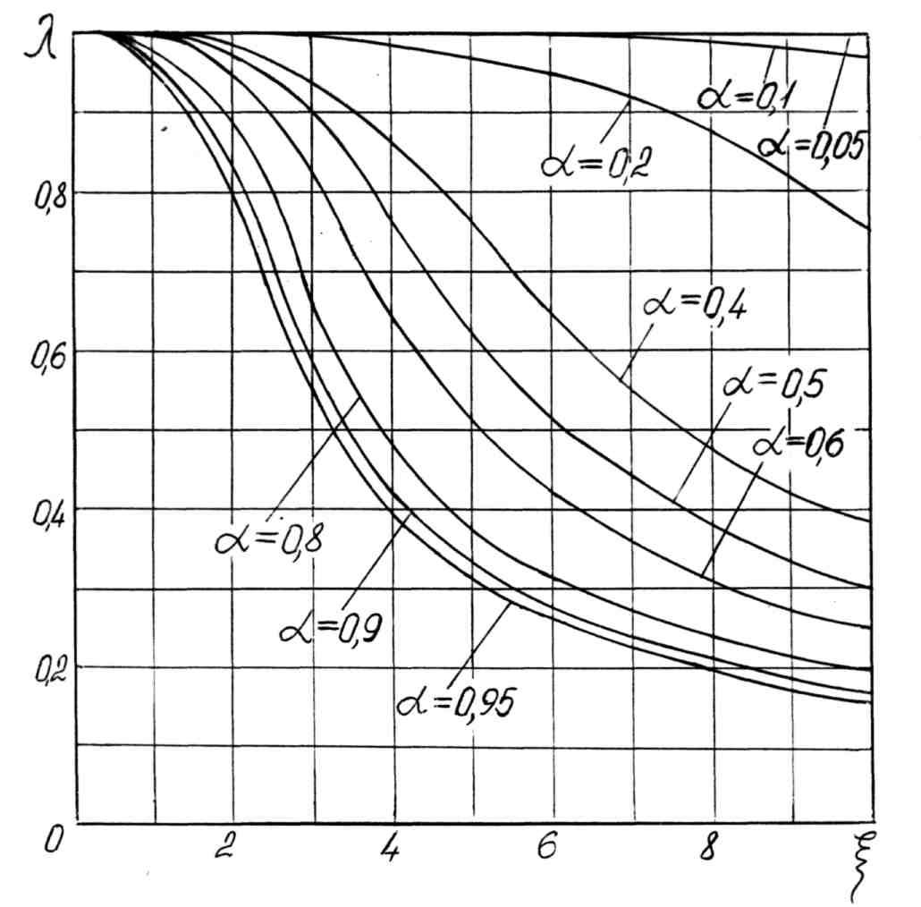 Рис. 4. Коэффициенты уменьшения индуктивного сопротивления при перемещении замыкающего элемента снизу вверх
