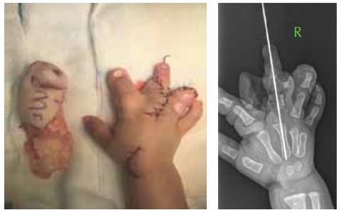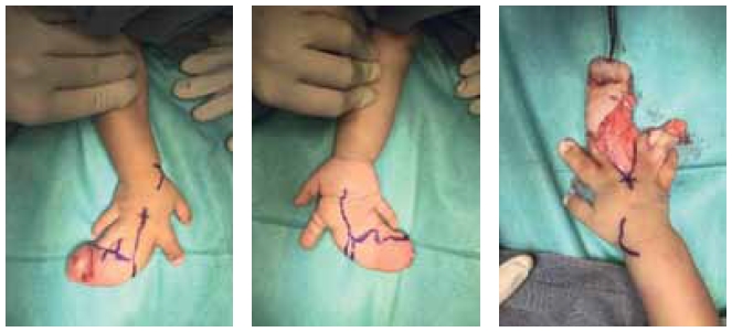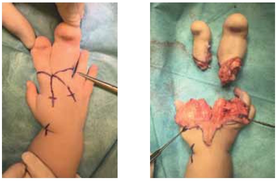 Therefore, this type of surgery improved the results of surgical treatment of this category of patients, and is an excellent and promising alternative for the method of stepwise resection of the affected fingers, especially in permanent removal of hyperplastic rays.
