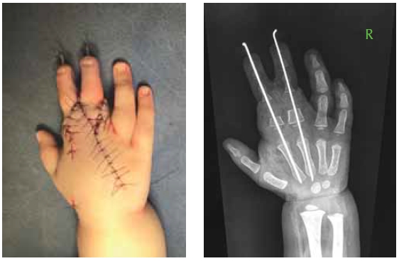 Fig. 4. The appearance of the hand and radiograph at the end of surgery