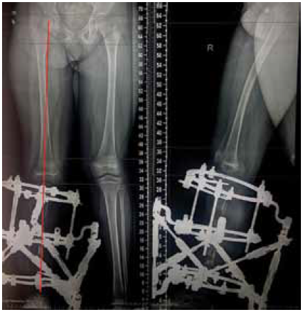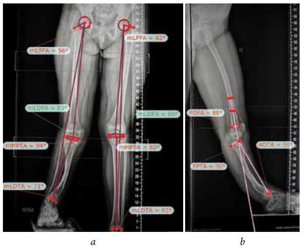 During the planning of deformity correction, all patients underwent panoramic radiograph of the lower extremities in 2 standard views and computed tomography of the lower extremities. Preliminary planning of deformity correction was conducted using specialized software (TraumaCad, Boneninja) [7].