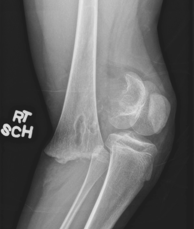 A 9-year-old female sustained an injury to her right femur after a low-speed sledding accident into an upright basketball pole. The patient presented to the emergency department with gross right knee deformity (figure 1), inability to ambulate, and pain in her right lower extremity.
