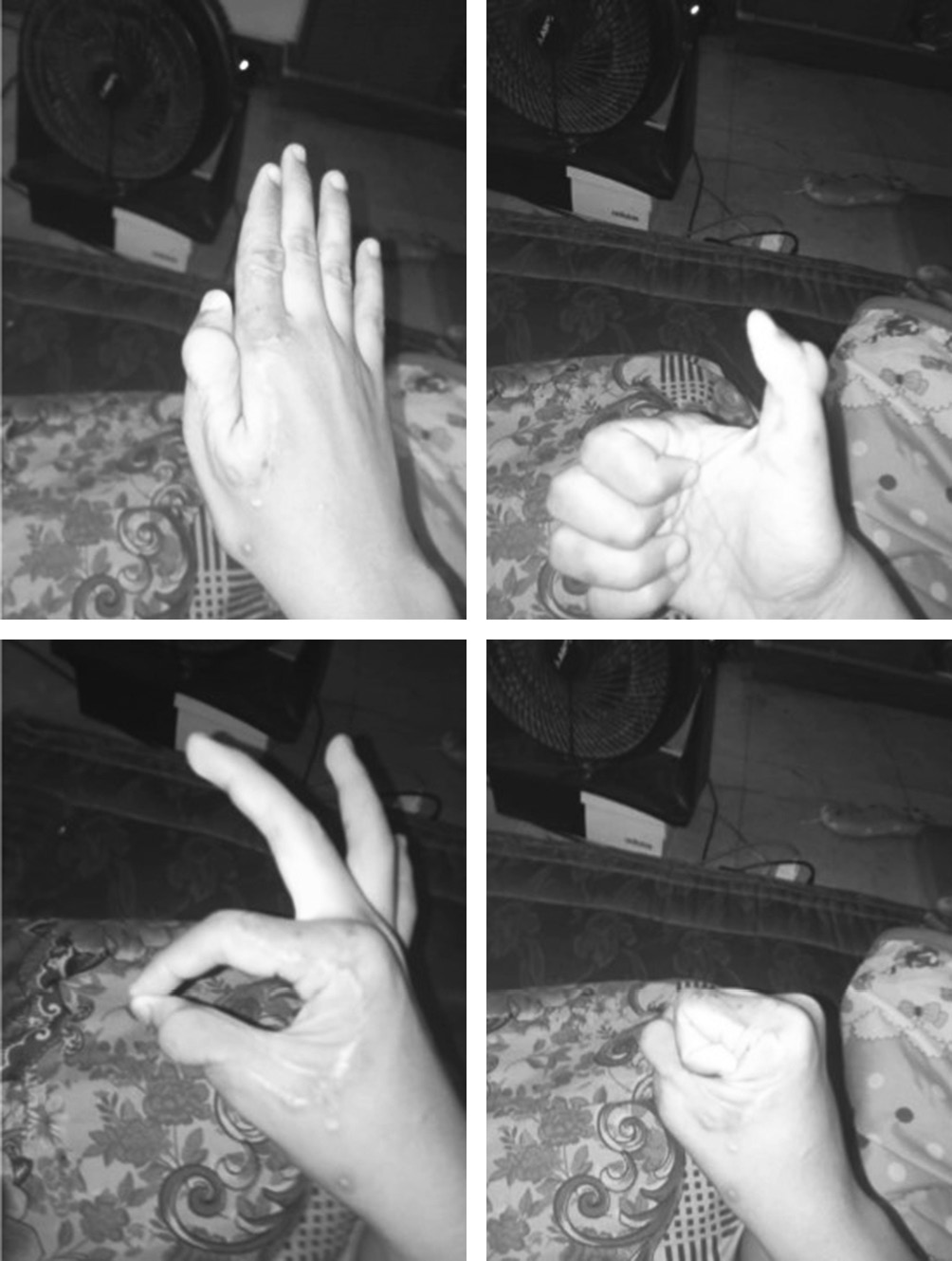 Upon outpatient follow-up one-month post-trauma, the extensor policis longus tendon was noted to be exposed as a result of skin edge necrosis distal to the amputation line with an area of 2x1.5 cm. The child was subsequently brought to the operating theatre at which the first dorsal metacarpal artery flap (FDMA flap) was raised to cover the exposed tendon. Recovery was uneventful following the surgery (Fig. 2). At 2 months following trauma, the FPL tendon was transferred to the FDS of the ring finger with the aim to restore thumb flexion with the repair performed at Zone 5 (proximal to the transverse carpal ligament). Early active movement and rehabilitation were commenced following tendon transfer. He has good ROM at the CMCJ with good apposition however has stiffness over the IPJ with delayed union of the fracture site. He is fully satisfied with the functional and esthetic outcome of the surgeries (Fig. 3).
