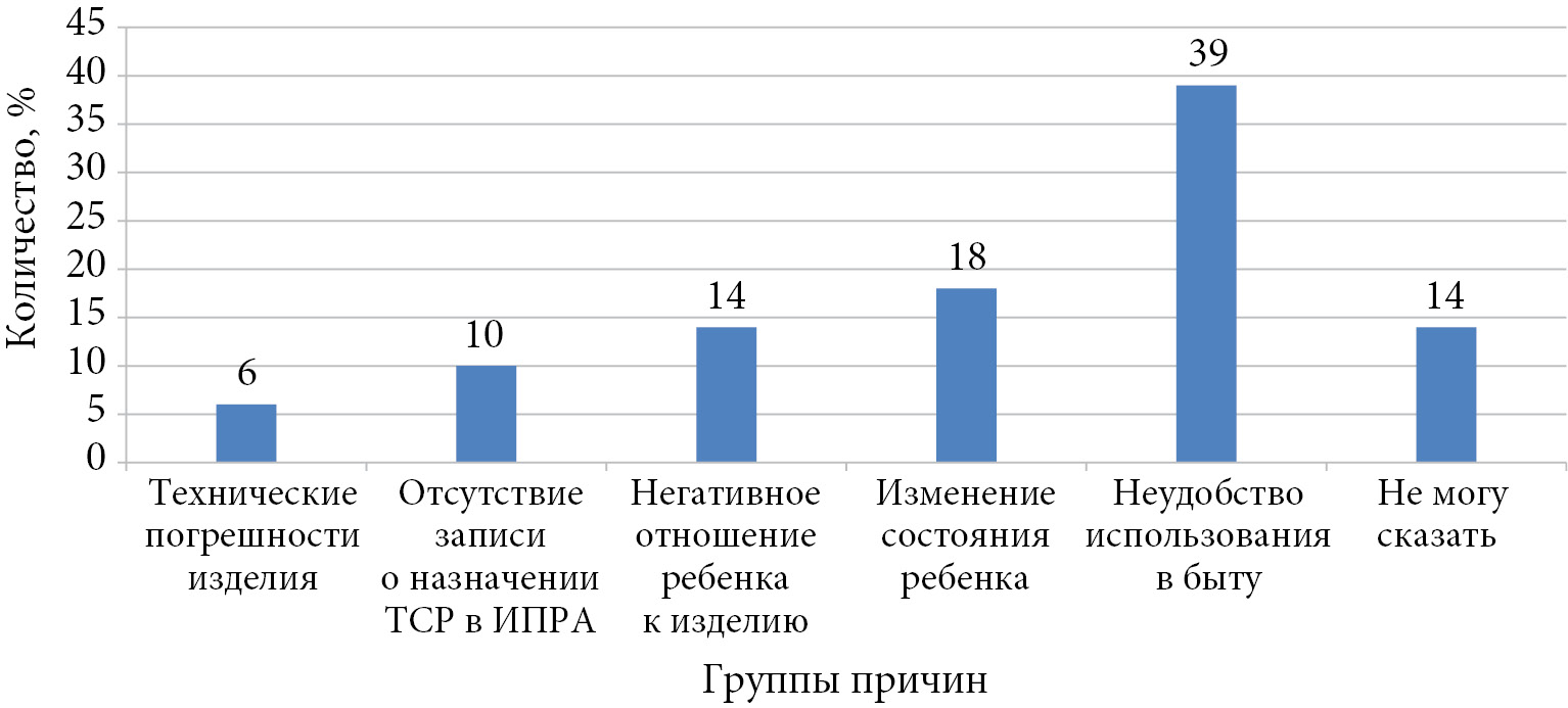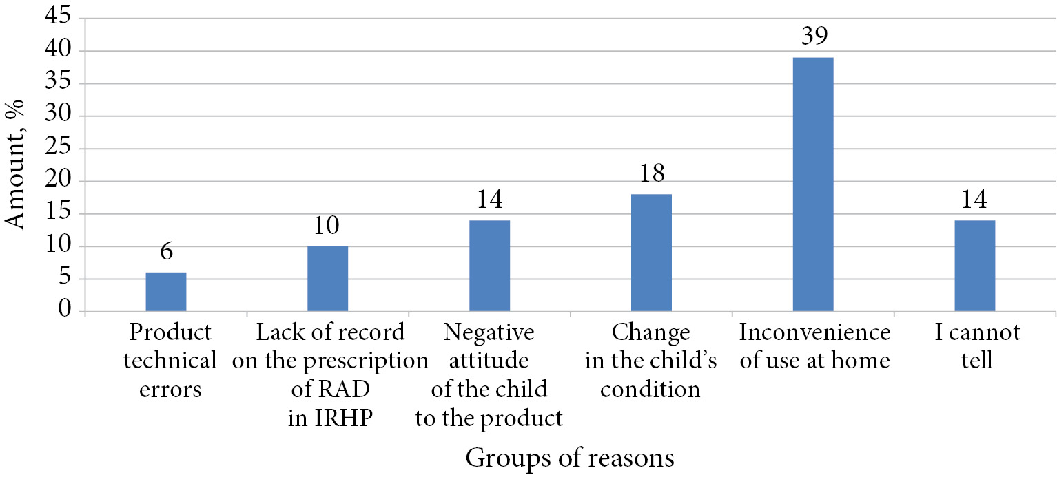 As can be seen from Fig. 3, over half (68.4%) of the reasons for parents to refuse RADs were subjective and associated with organizational problems when prescribing the products or adapting to them, the negative attitude of the child, and technical errors of the product. In only 17% of cases, the causes of failure were because of an objective change in the patient’s condition.