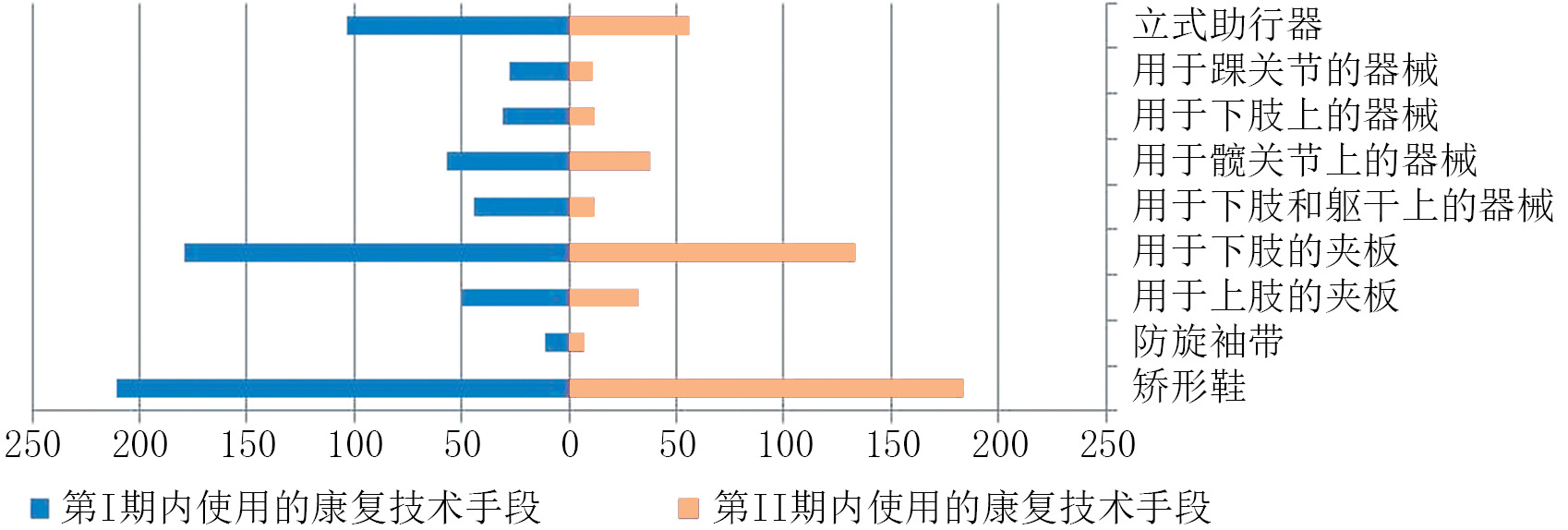 Fig. 2. Results of the analysis of the number of rehabilitation assistive devices (RAD) used by patients in periods I and II
