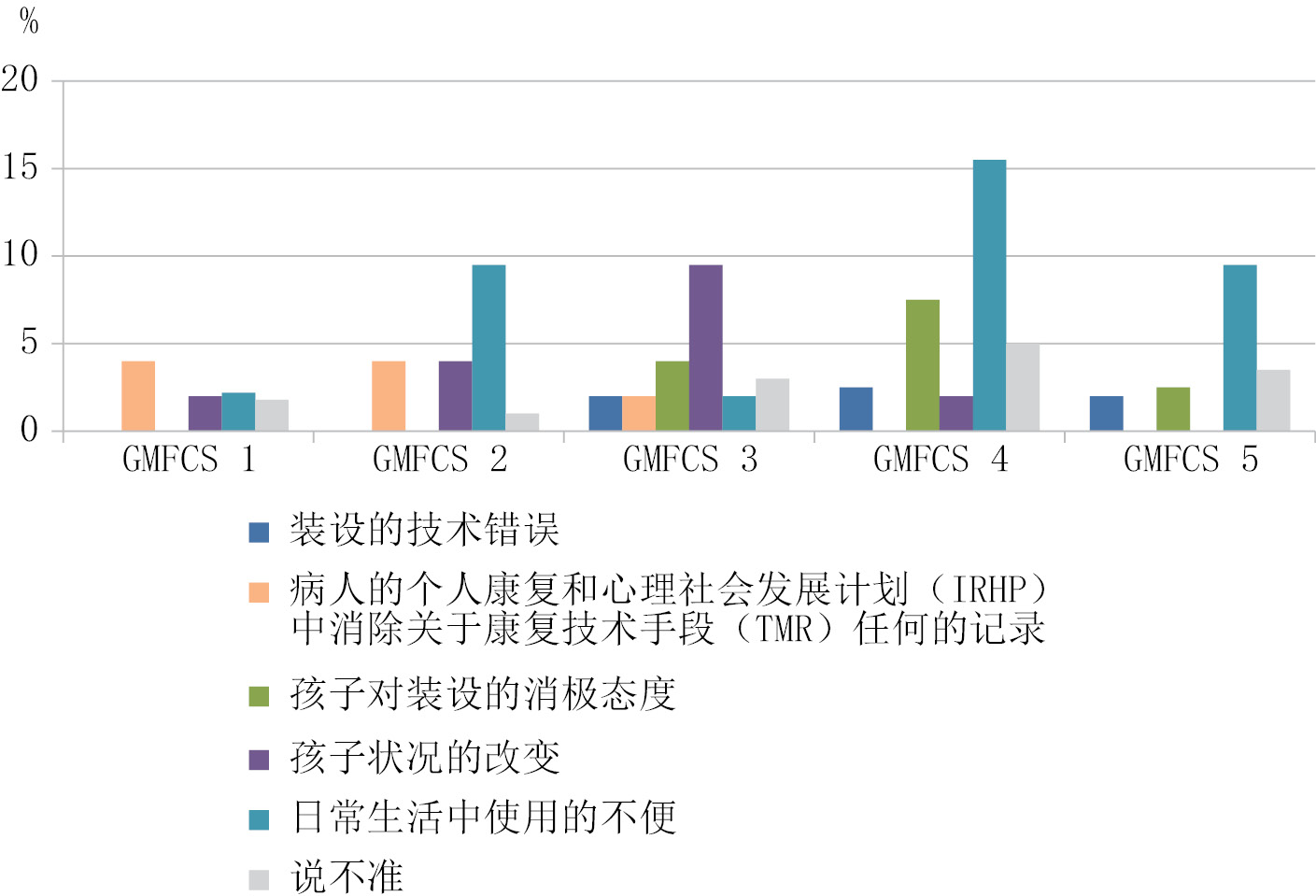 The highest frequency of reuse of standing frames (supports for standing) was registered in patients with a GMFCS level 5 of motor activity (77%).
