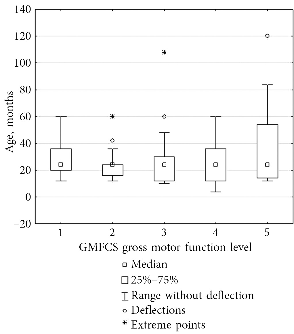 Fig. 5. Age at the beginning of the use of rehabilitation assistive devices in pediatric patients with spastic forms of cerebral palsy