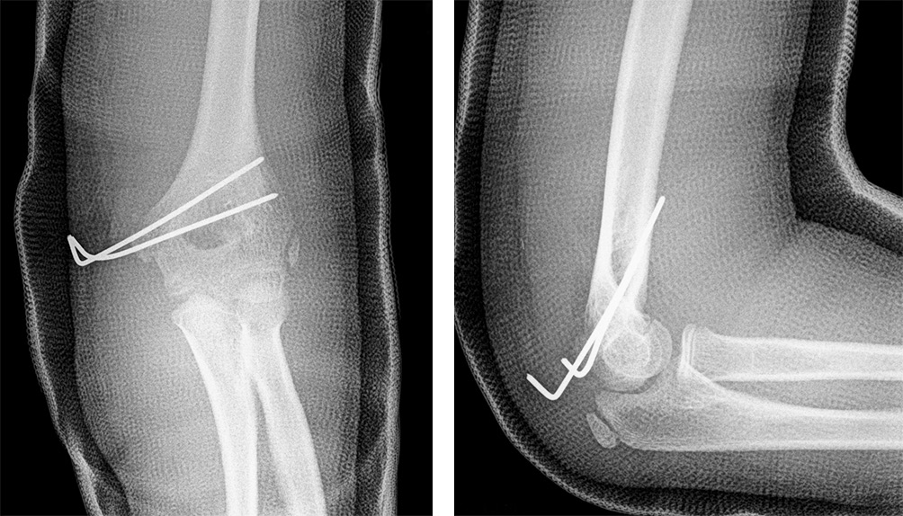 - Pace GI, Hennrikus WL. Fixation of displaced medial epicondyle fractures in adolescents. J Pediatr Orthop. 2017;37(2):e80-e82. https://doi.org/10.1097/BPO.0000000000000743.