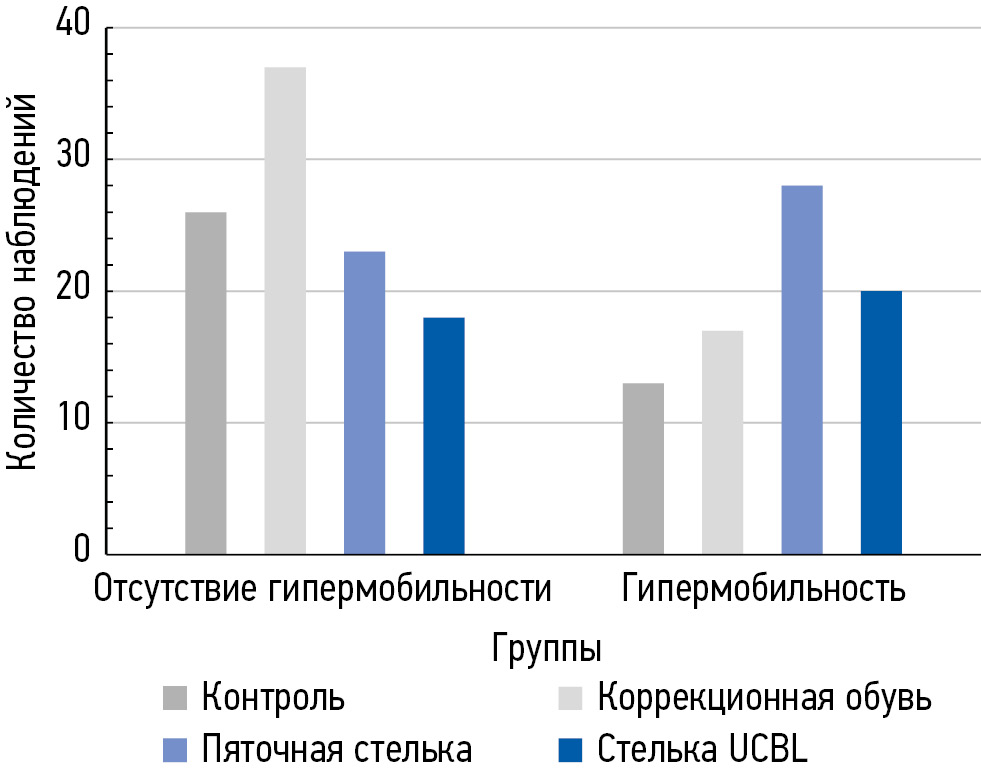 Несмотря на повышенный интерес к проблеме, научных исследований, подтверждающих эффективность использования коррекционной обуви или стелек при мобильном плоскостопии, не проводилось. Предыдущие публикации носят в основном ретроспективный характер. В тех же работах, в которых авторы позиционируют исследования как проспективные, отсутствует деление пациентов на контрольную и лечебную группы или не выполнено корректного сравнения [2, 3].