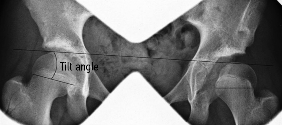 In 2011. McGillion and Clarke developed additional radiological criteria to the existing ones to objectify the indications for epiphysiodesis [21–23]. They defined the following radiographic criteria to evaluate epiphyseal displacement in necrosis on anteroposterior pelvic radiographs: the angle between the Hilgenreiner line and line along the edges of the epiphysis of the femoral head. A change in the angle between these lines indicates displacement of the femoral head in relation to the pelvis, which makes it possible to suspect aseptic necrosis and deformation of the lateral growth zone over time. The authors do not give the normal values of this angle; however, note that in the norm, this angle is positive (>0), and in pathology, it decreases and the lines become parallel (Fig. 2).