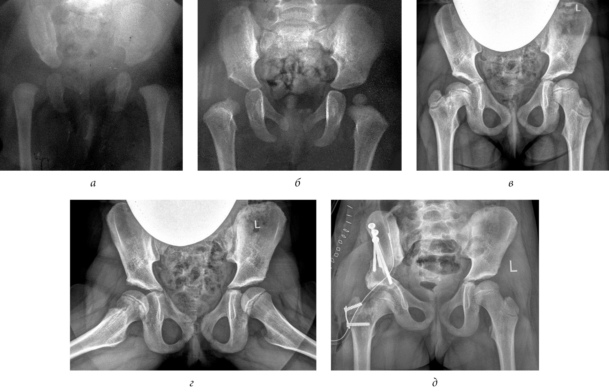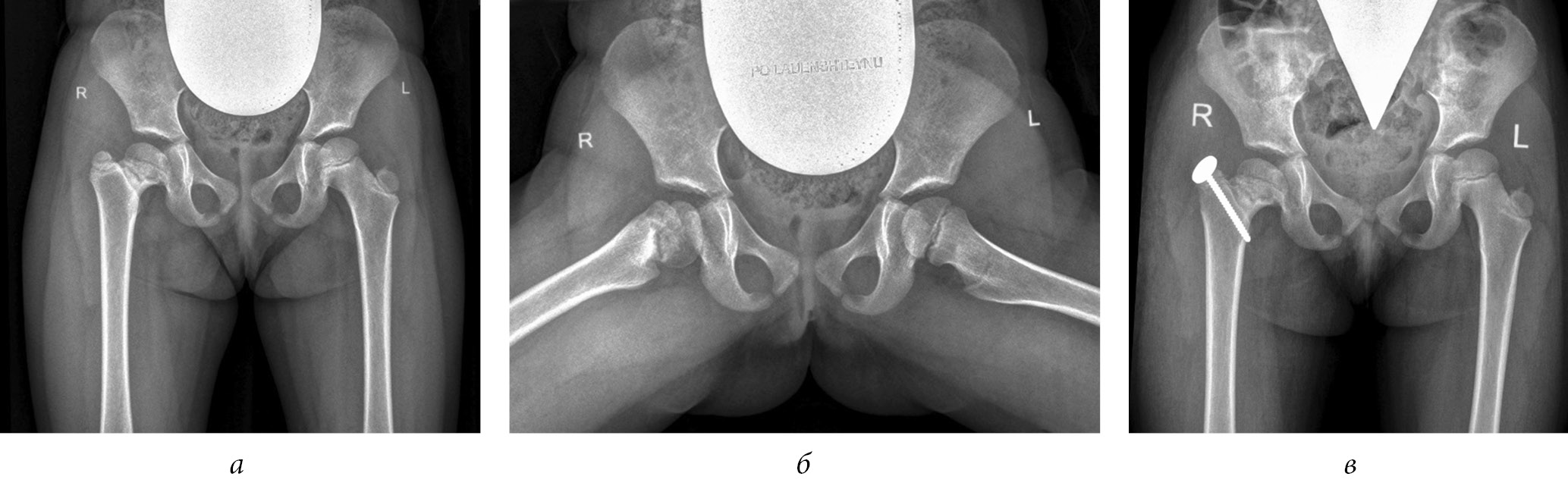 In Russian literature, no study has reported about trochanteric epiphysiodesis performed alone or in combination with surgical treatments of children in order to prevent progression and to treat impaired relationships in the hip joint in the form of an emerging high position of the greater trochanter by affecting its growth zone. According to the literature and our own experience, the high position of the greater trochanter is most often associated with avascular necrosis of the femoral head, following conservative treatment of congenital hip dislocation, as well as with septic arthritis [1, 3, 8].
