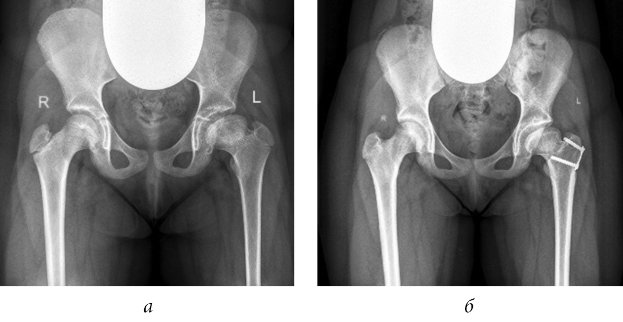 Disturbance in the growth zones of the femoral neck and head, which results in the formation of the so-called relative overgrowth of the greater trochanter, is one of the most common disorders of the hip joint [1–3]. This condition also leads to gait impairment due to gluteal muscle dysfunction, limited hip joint movement, trochanteric-pelvic impingement, and coxarthrosis [2–5]. An expectant management is currently used as treatment of such deformities of the proximal femur. To treat disorders of the hip joint in children aged 10–13 years, the classical variants of corrective osteotomies and Veau–Lamy transposition of the greater trochanter are employed [6–8]. However, in international literature, preference is given to methods that immediately eliminate the causes of extra- and intra-articular impingement syndrome to prevent the development and progression of coxarthrosis in young adults [9].