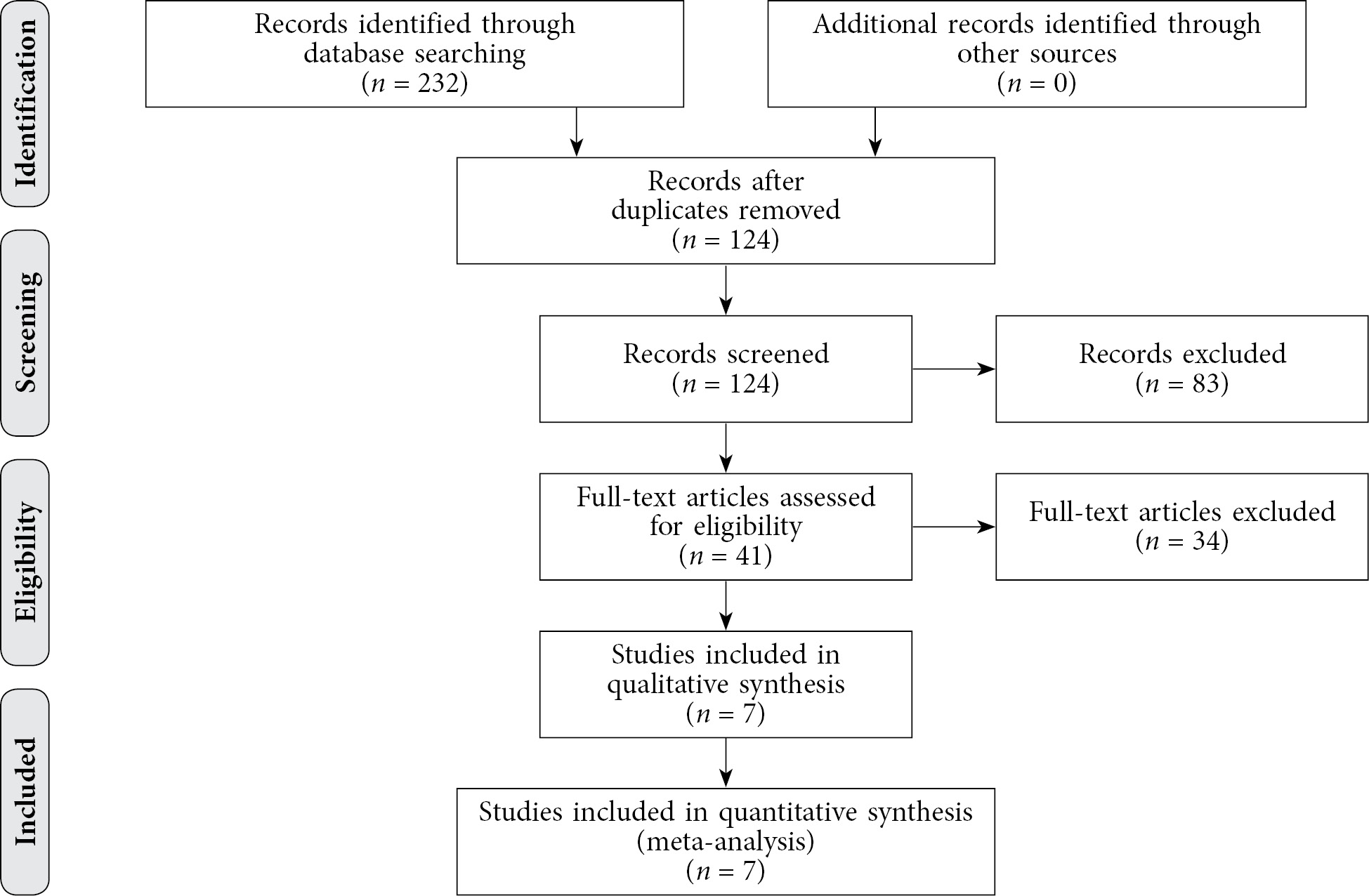 A total of seven studies (324 patients, 408 feet) were included in the meta-analysis. Five studies were RCTs (Level I evidence), while 2 articles were PCSs (Level II evidence) (Table 2). Critical appraisal of all studies based on the Joanna Briggs Institute Scoring System showed that none failed to meet more than two validity criteria (Table 3).