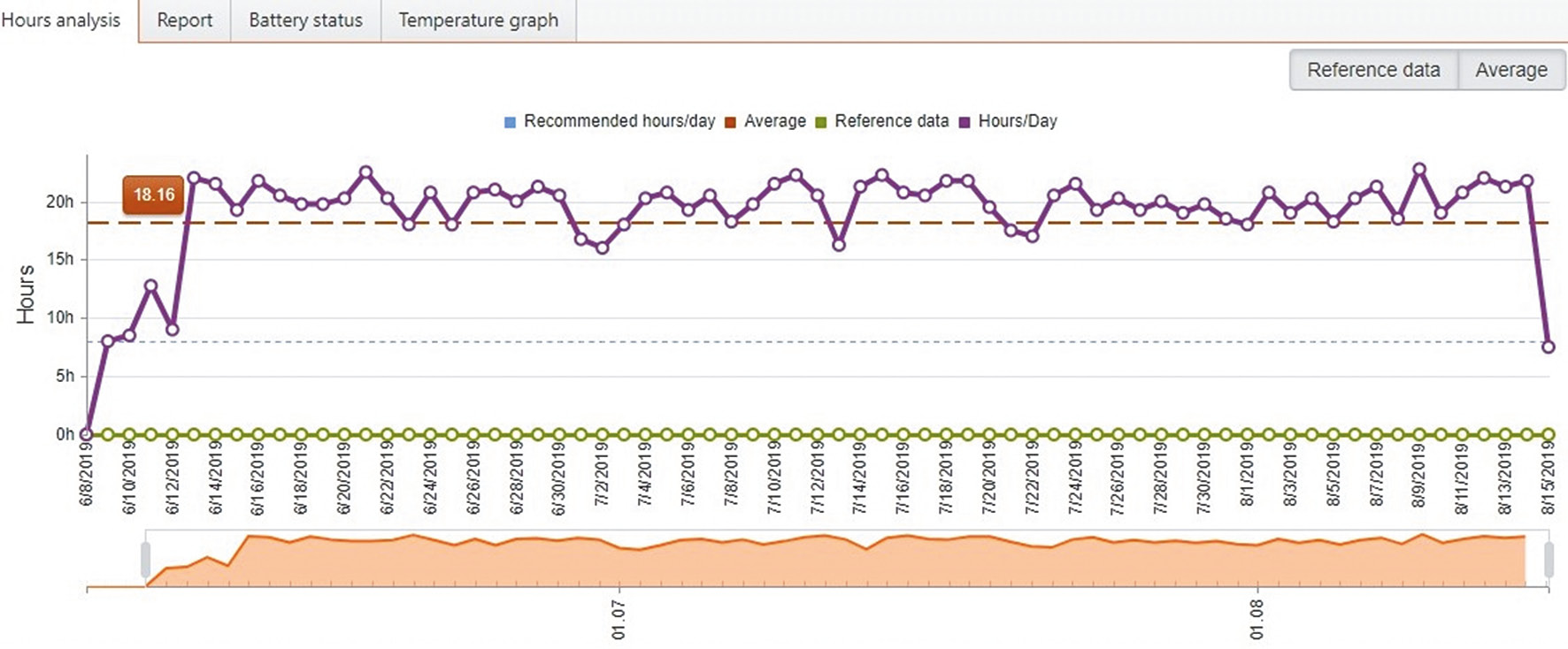 Рис. 3. Пример графика температурных кривых, полученных на датчике Orthotimer, среднее время ношения — 18 ч/сут