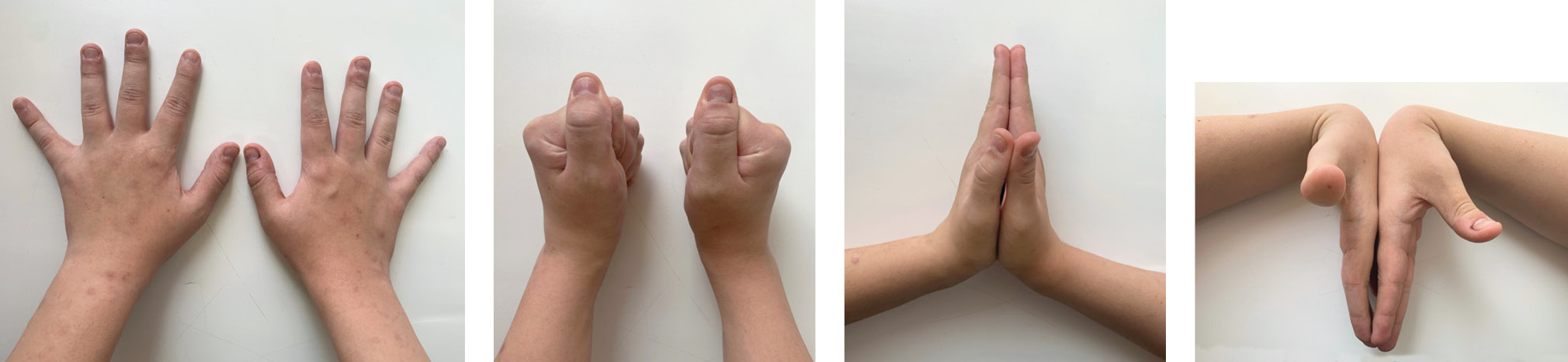 Fig. 1. External appearance of the hands and amplitude of movements in the wrist joint in patient P (17 years old)