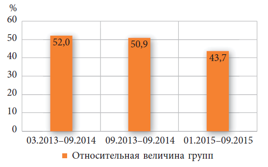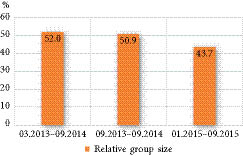 Fig. 1. The proportion of “walker” groups according to three own studies. Grouping by date of birth