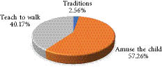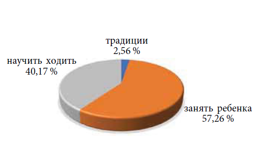 As shown in the diagram, only 40.17% of the respondents in Rzhev used walkers to enable better child development. Majority (57.26%) of them stated that walkers were a means “to amuse the child” safely, and many parents stated that the use of walkers provided the opportunity for them to “do their own duties.” In addition, some respondents reported their awareness regarding the danger involved in using such devices.