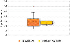 The four-field table was analyzed; the obtained criterion of the χ2-square was 3.743 for p > 0.05 (with the Yates correction of 2.981, p > 0.05). Such an error probability level (p-value) exceeds the acceptable level, indicating no statistically reliable connection. Accordingly, the impact of baby walkers in this study was random. Thus, we can conclude that no static deformities associated with the use of baby walkers were found.