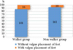 The grouping was performed as per the use of baby walkers; in addition, the sex composition, reasons for using such devices, “walker” damage, and valgus placement of feet were also considered.