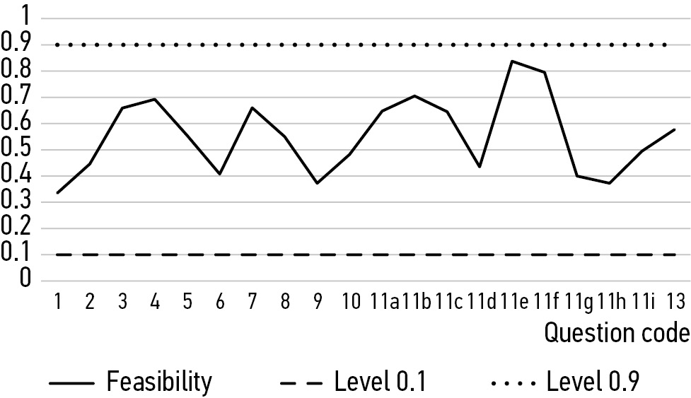 The Figure 3 shows that the feasibility condition was met, so the qualitative compilation of questionnaires was confirmed in terms of feasibility.