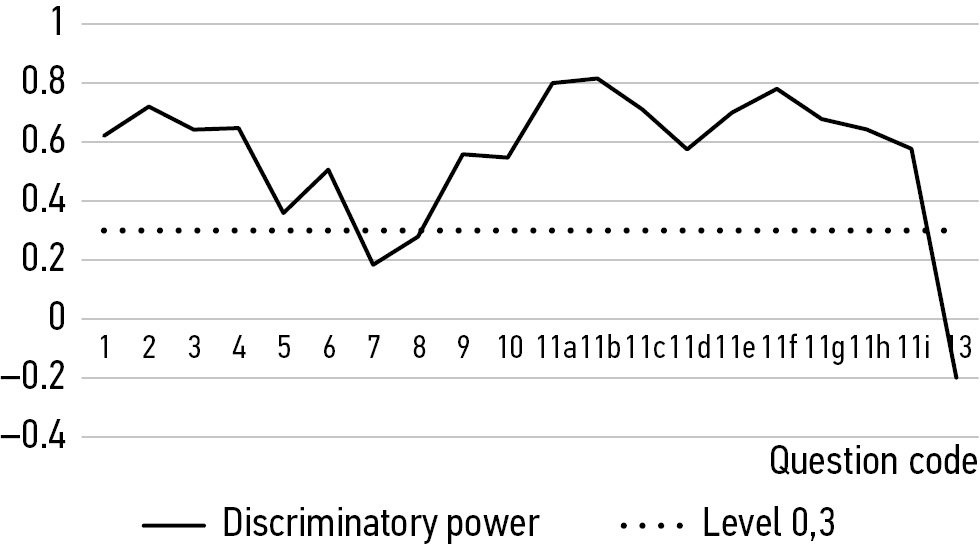 Fig. 4. Discriminatory power values of questions for the Pedi-IKDC questionnaire