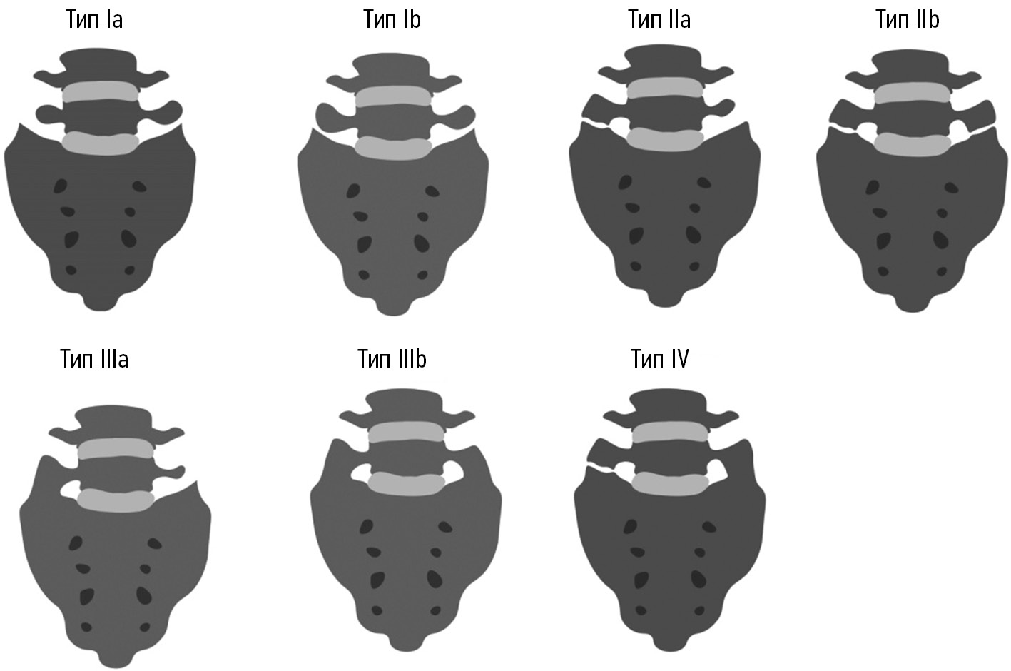 В основу классификации положен анализ размеров поперечных отростков нижнего поясничного позвонка и характер контакта (псевдоартикуляция или конкресценция) этих отростков (или одного отростка) с крыльями крестца с одной или с обеих сторон. Патология возникает внутриутробно, с 4-й по 6-ю недели гестационного периода [14].