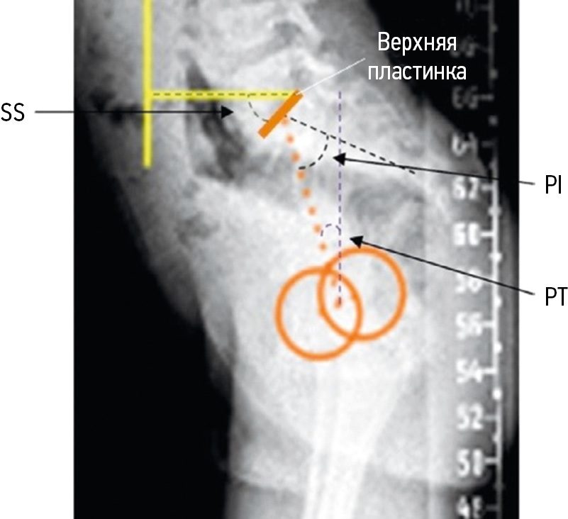 Оценка включала следующие показатели: Pelvic tilt (PT), Sacral slope (SS), Pelvic incidence (PI), Lumbar lordosis (LL), Thoracic kyphosis (TK), Sagittal vertical axis (SVA) (рис. 1 и 2). Эти параметры отражают позвоночно-тазовые соотношения, изменение которых позволяет оценить влияние хирургической коррекции СККС на сагиттальный баланс у пациентов с ДЦП.