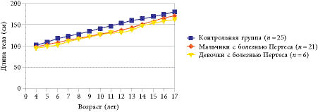 Fig. 4. Comparative parameters of body length in boys and girls with Perthes' disease and control group