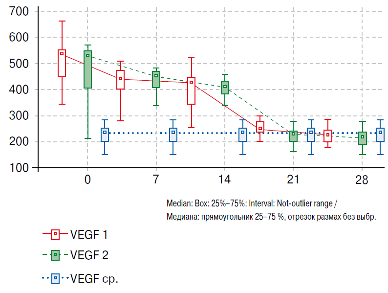 VEGF | 231.9 (198.8–242.1) | 539.5 (454–546.5) | 524.34 (387–546.4) |