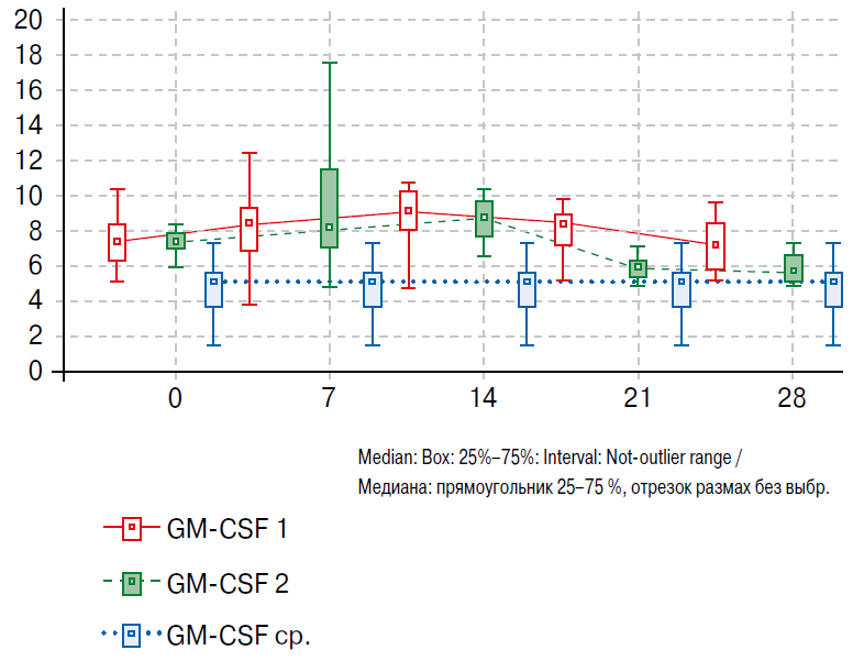 GM-CSF | 5.3 (3.75–5.6) | 7.35 (6.6–8.3) | 7.35 (7.02–7.86) |