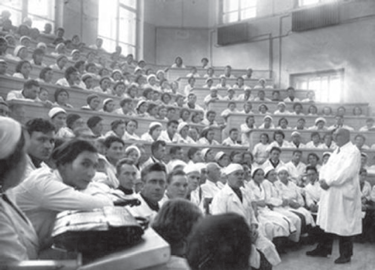 Лекции Сергея Романовича всегда проходили очень живо (рис. 2), в них он приводил образные высказывания видных врачей, писателей и поэтов, остроумные сравнения, освещал вопросы врачебной этики, подчеркивал значение доктора и его обязанности по отношению к больным и обществу. На лекциях он всегда знакомил с новыми сведениями, сообщал о главнейших открытиях в смежных науках. Миротворцев был блестящим оратором и рассказчиком, обладал превосходным даром слова. И естественно, что влияние Сергея Романовича на студентов и врачей было огромно. В то же время увлеченность работой и безграничная вера сотрудников в руководителя клиники способствовали творческому единению. Сергей Романович обучил и воспитал многие тысячи врачей в духе патриотизма, беззаветной любви к Родине, к медицинской науке.