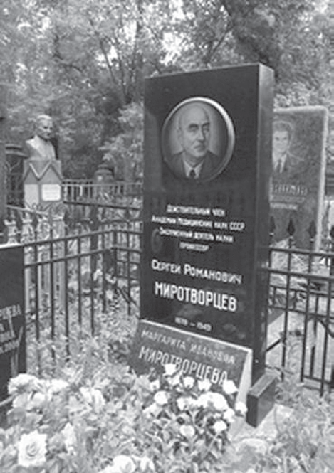 Умер Сергей Романович 4 мая 1949 г. и похоронен на Воскресенском кладбище в Саратове (рис. 3). Коллеги, последователи и ученики учеников с большим уважением вспоминают Сергея Романовича Миротворцева, человека большого таланта, замечательного клинициста-ученого и общественного деятеля, занявшего одно из почетных мест среди выдающихся отечественных хирургов и урологов прошлого века.