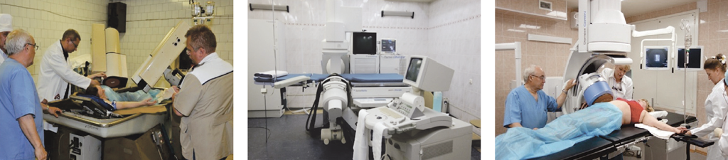 Рис. 3. Оборудование для дистанционной ударно-волновой литотрипсии, используемое в Александровской больнице: слева — «Урат-П», в центре — «Dornier Doli», справа — «Dornier Gemini»