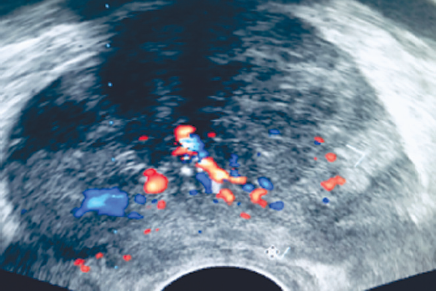 Fig. 1. Ultrasound imaging of the prostate with Doppler control