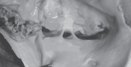 Fig. 1. Synechiae (adhesions) in the lumen of the left common iliac vein according to H. Mitsuoka et al. (2013)