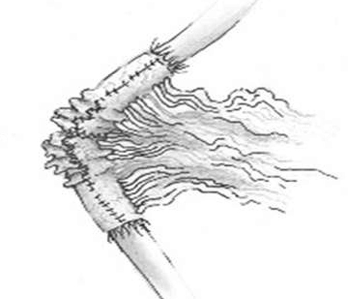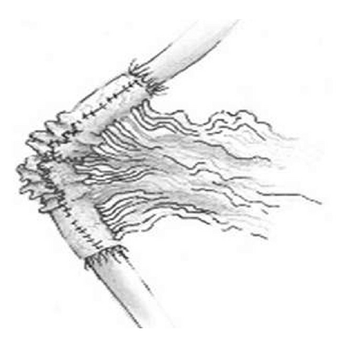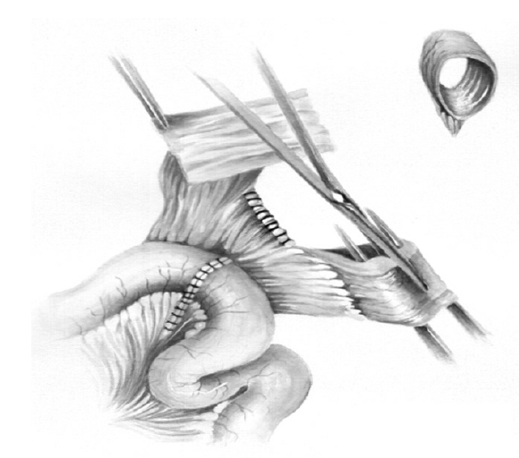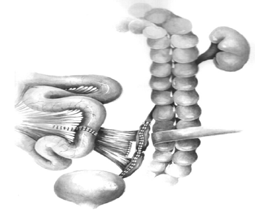 Рис. 5. Формирование из двух детубуляризированых кишечных участков единого трубчатого илеотрансплантата