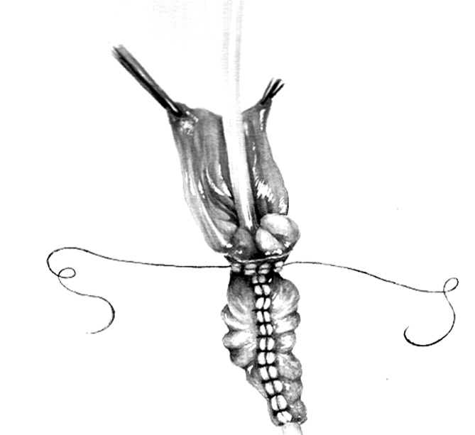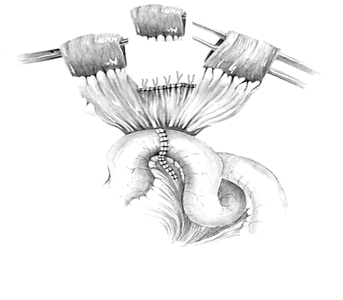 Рис. 4. Два оставшихся кишечных участка детубуляризирова- ны и сшиты между собой