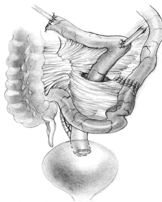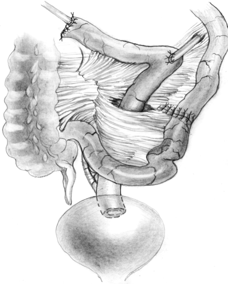 Кишечная пластика при протяженных стриктурах мочеточников является единственной возможностью сохранить почку и восстановить мочеиспускание естественным путем. Изолированный сегмент подвздошной кишки можно считать лучшим и универсальным пластическим материалом для замещения любого дефекта мочеточника, в том числе с обеих сторон и/или в сочетании с ортотопической илеоцистопластикой. Некоторые ее этапы имеют важные особенности. Так, после взятия кишечного трансплантата должно быть определено, как его располагать — внутрибрюшинно или внебрюшинно, изо- или антиперистальтически — и как выполнять мочеточниково-кишечные и кишечно-пузырные анастомозы. Считаем, что, располагая кишечный участок забрюшинно, мы помещаем его в условия, не свойственные данному органу, поэтому кишечные трансплантаты, в том числе и мочекишечные анастомозы, практически всегда оставляли в брюшной полости. Важным остается вопрос, как расположить трансплантат — «по ходу его сокращений» или наоборот. Безусловно, следует всегда стремиться к изоперистальтическому положению кишечного участка, что, по нашим данным, было выполнено у 96,1 % пациентов.