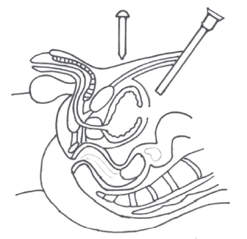 8. 图.2. 未缝合的膀胱腹膜破裂采用套管针膀胱吻合术 Fig. 2. Conducting a trocar cystostomy in case of non-sutured intraperitoneal rupture of an urinary bladder