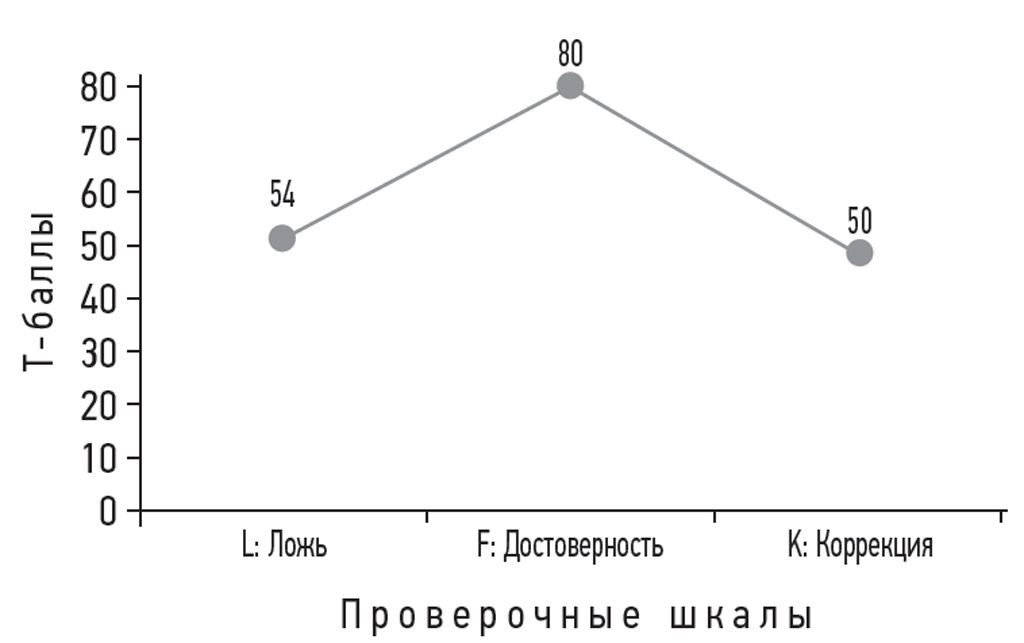 A low score on the criticality scale, combined with a high score on the reliability scale, evidences the frankness of the subjects. In addition, there is no attitude of subjects for the testing procedure. Contrastingly, such a painful, frank, and stressful condition at the same time fits into the general profile and can be determined by the influence of CPPS.