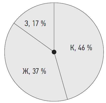 Рис. 1. Отклонения от норм СанПиН суммы примесных компонентов в воде водозаборов разных категорий районов. Районы с заболеваемостью мочекаменной болезнью: К — максимальная; Ж — средняя; З — низкая