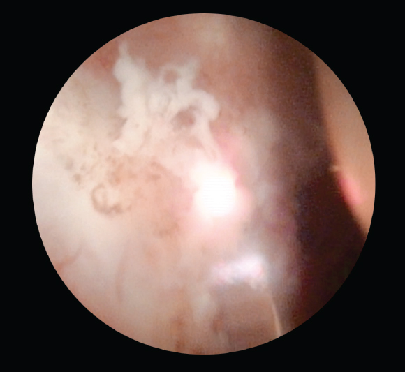 Рис. 2. Этап Nd:YAG-лазерной абляции ложа опухоли мочевого пузыря
