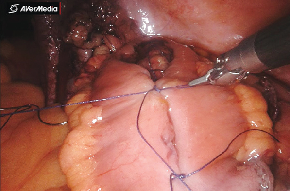 Fig. 7. The anterior neobladder wall formation (using a single-row serous-muscular continuous Vicryl suture 3-0)