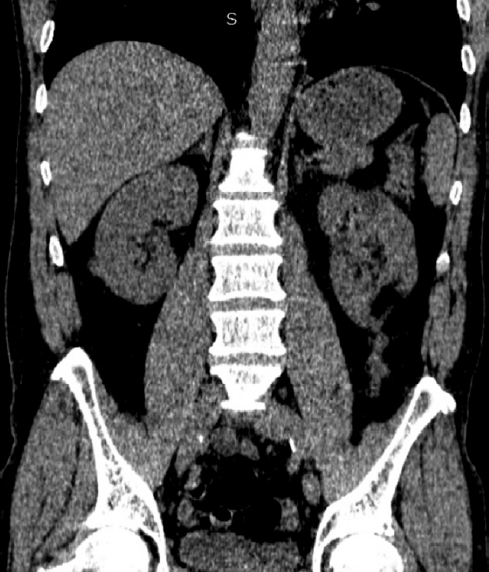 Рис. 6. Компьютерная томография мочевыводящих путей с внутривенным контрастированием через 3 мес. после операции.