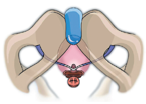 Рис. 3. Схема субуретральной установки комбинированного аллогенно-синтетического слинга.