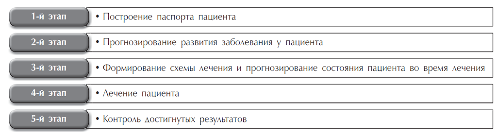 Таким образом, для построения прогноза развития заболевания и эффективности лечения необходима формализация данных, полученных на протяжении многих лет, что служит основой построения интеллектуальных программ, которые помогают принять решение о дальнейших шагах в алгоритме лечения, опираясь на множество факторов, которые могут быть обработаны с помощью современного математического аппарата. В данном случае программные системы объединяют накопленный опыт врачей в развитии каждого заболевания по множеству признаков.