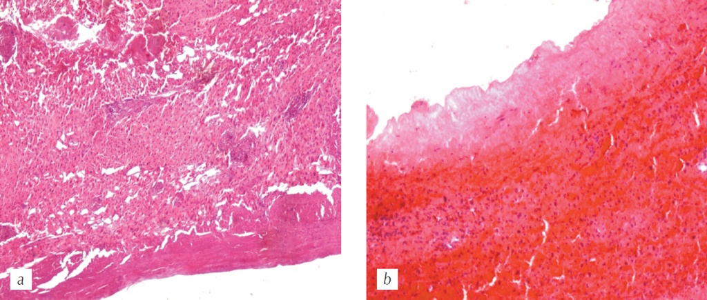 5. Fig. 4. Histopathological picture of the liver with a cyst (a), cyst wall (b)